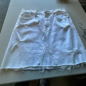 Stylish white denim skirt with a trendy distressed design. Perfect for casual outings.