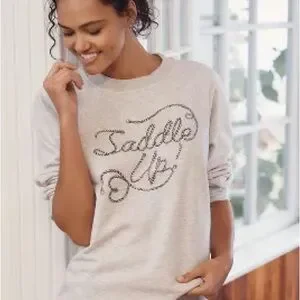 BY ANTHROPOLOGIE CREW-NECK GRAPHIC SWEATSHIRT | SADDLE UP | Western Boho | Large