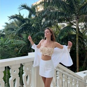 This elegant cream crochet lace top is perfect for adding a touch of sophistication to your wardrobe. The intricate floral design offers a unique and stylish look.