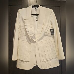 Express White Pleated Ruffle Blazer NWT Size M | Statement Wedding Guest Bridal