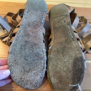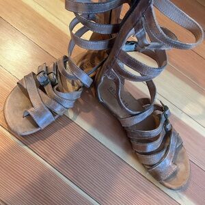 Step out in style with these chic brown BED|STU leather gladiator sandals. Perfect for any casual outing. Buckles to adjust for comfort. Some wear on soles. Factory distress as part of the design.