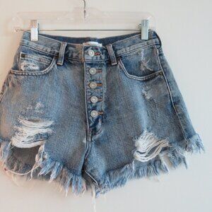 MOUSSY VINTAGE Exposed Button Fly Distressed Raw Hem Jean Shorts - Size 25 Inch Waist