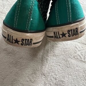 Converse Chuck Taylor All Star Blue with Gun metal rhinestones. Missing laces, has some distress on side bottom part of shoe, otherwise in good condition. Comes from pet/smoke free home. Great looking pair of converses! Open to offers!