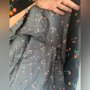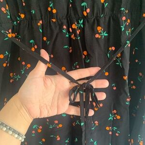 Elegant black dress with a vibrant cherry fruit pattern. Perfect for any occasion.