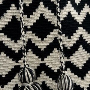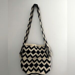 Black and Beige Chevron Shoulder Bag with Braided Strap