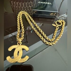 LOT 2082 24K gold plated CHANEL vintage necklace CC