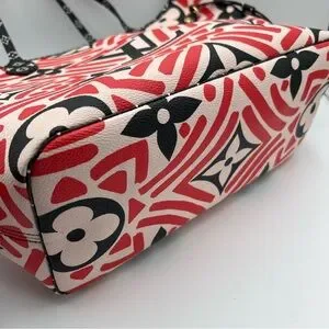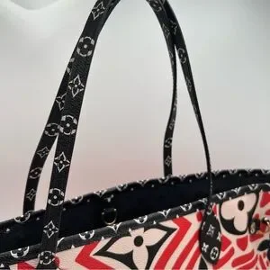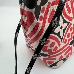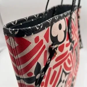 Stylish and iconic, this Louis Vuitton tote bag features a striking red and black design. Perfect for adding a touch of luxury to any outfit.