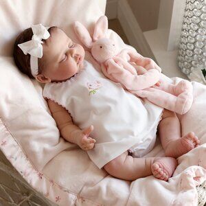 Size Preemie tag, but fits Newborn also (Baby in photo wears Newborn/ 1 month size-see measurements for fit)