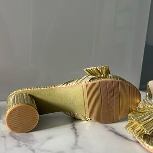 Step out in style with these elegant gold heeled sandals. Perfect for any occasion, these shoes feature a chic bow design that adds a touch of sophistication to your outfit.
