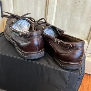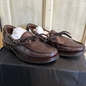 Experience timeless style with Sebago's brown leather boat shoes, featuring a polished finish and traditional moccasin-style stitching. These shoes are equipped with durable rubber soles for excellent grip on wet surfaces, making them perfect for both casual and nautical adventures. The thin cotton laces add a touch of elegance, ensuring a secure fit and a classic look.