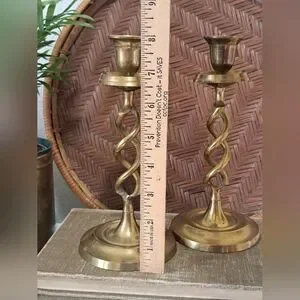 Vintage Open Barley Twist Brass Candle Stick Holders
