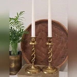 Vintage Open Barley Twist Brass Candle Stick Holders set of 2