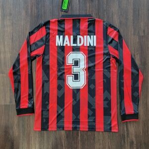 Paolo Maldini AC Milan New Men's Retro Long Sleeve Lotto Soccer Jersey