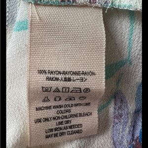 This is a beautiful FREE PEOPLE Clear Skies printed tunic. It has a single tie at the cold shoulder, it has some interesting asymmetrical seaming, it’s a soft ivory with a floral pattern and pastel colors and it is in excellent condition. Wear as a tunic or as a dress, great for warming weather.