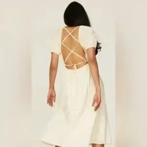 Pamela Love X RTR Cream embroidered midi dress.
