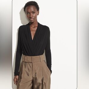 Vince Long Sleeve Crossover Bodysuit in Black