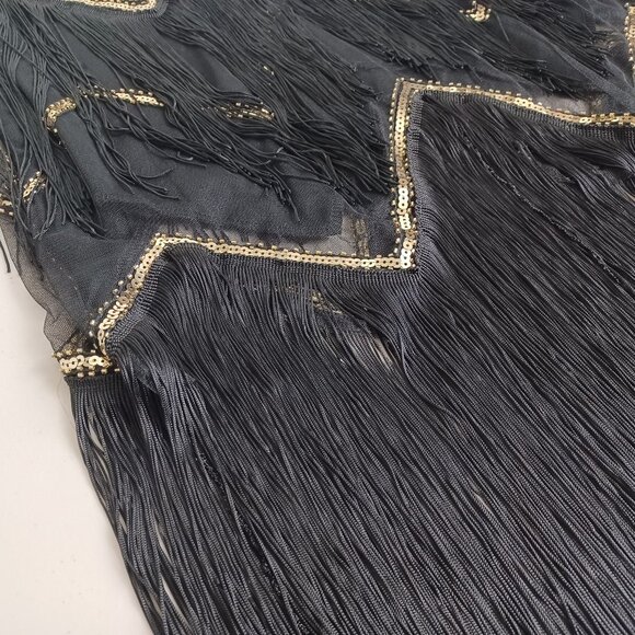 A 1920’s inspired dress in a classic black shade with unique gold beads and sequin patterns. The overlay material is made of fine mesh and has underlining with some stretch. It has a concealed zipper at the side and it’s mini length with tiered fringes falling below the knees. Perfect for parties. Great condition. Features: Party, formal, evening, cocktails, dance, festivals V-neck Mini-length Sleeveless Side zipper Mesh overlay Beads and sequin patterns Tiered fringe hemline Lined Polyester Size: M Approx. flat-lay measurements: Bustline 16" Waist 14" Hips 17" Length (from shoulder strap) 45" **New to Poshmark? GET $15 OFF your first purchase when you sign up and use my code SUITYOURSTYLE