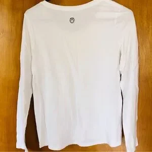 White long sleeve tee featuring a colorful tree design. Perfect for casual wear.