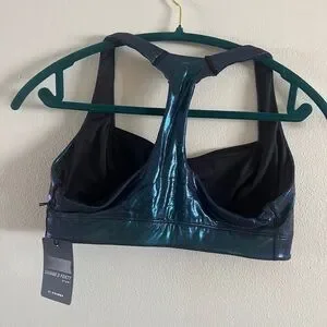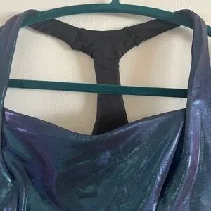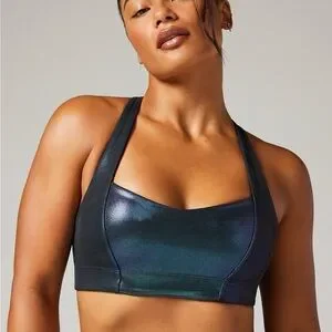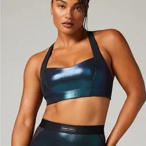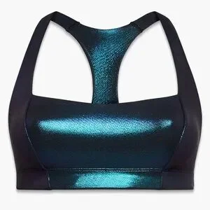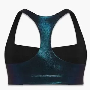 Shimmering iridescent sports bra with a sleek design. Perfect for active wear with a stylish touch.