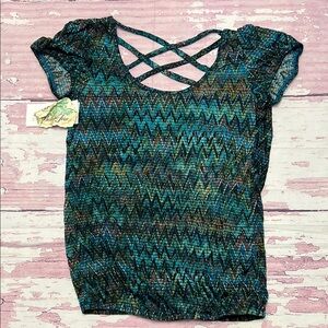 Elevate your style with this vibrant multicolor top featuring a chic crisscross detail. Perfect for any occasion. Stretch around the bottom and part of the neck line. NWT