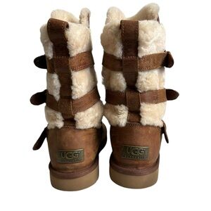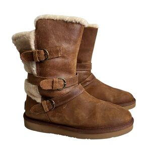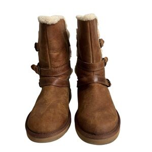 UGG Australia Women’s Tan 3 Buckle Leather Sheepskin Fur Lined Boots Size US 8