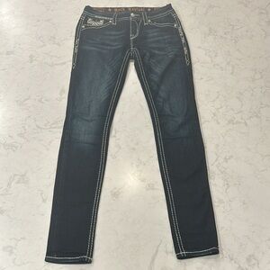 Rock Revival Karla Skinny Jean 27 Embellished Bling Low Rise Dark Wash