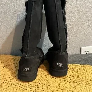 Stylish and comfortable used women's black Ugg boots perfect for any occasion. These boots offer a sleek design with a cozy interior.