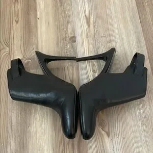 Elevate your style with these elegant Rayna black heeled mule boots from Lauren Ralph Lauren. Crafted with a sleek leather material, they feature a high 4” stiletto heel and an almond toe design for a sophisticated look. A gorgeous classic for all seasons. Brown pair also available in my closet.