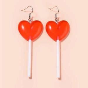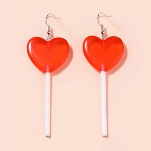 Fun Valentine’s❤️🍭Red Heart Lollipop Dangle Earrings