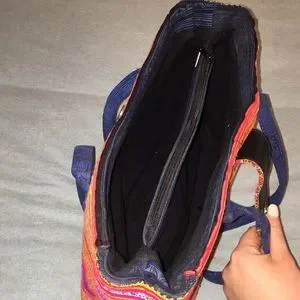 Beautiful brand new never worn Kilim/Moroccan/Aztec woven style bag w/ intricate details! Variations of pink, rust, orange, gold, & indigo colors!