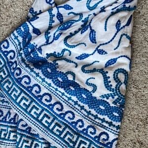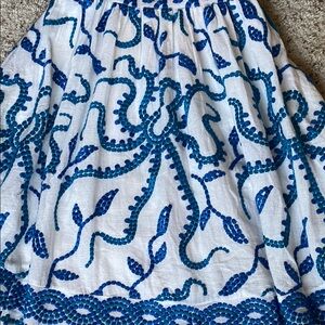 EUC Maeve White Embroidered Halter with Blue Embroidery