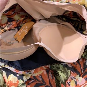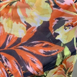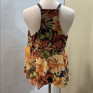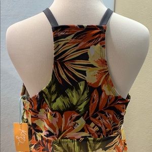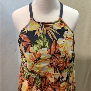 Kona Sol floral tankini top - dark gray with white/pink/yellow/orange/green floral patterned gray straps. Mesh overlay on bust - no lining from under the bust down. Available Sizes: 14W, 16W, 18W, 20W, 22W or 24W. Very pretty colors. Quick dry, lightly padded bust. Brand new most with tags, all never worn. No discoloration, fading, stains, rips or holes. Smoke free home.