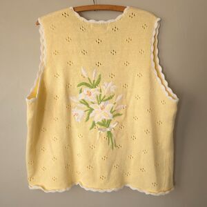 Vintage Mandal Bay Yellow Cardigan Button Up Grannycore Grandmacore Floral XL