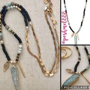 RARE HARD TO FIND S & D Jewel!! Gorgeous vintage gold chain with a beautiful druzy stone, black, gold, aqua and silver beads, sparkly pave crystal beads! So pretty and very popular; sold out necklace. Adjusts from app. 34-36" long. Unusually beeeautiful!!!