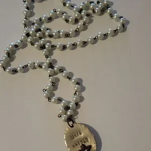 This stunning necklace features elegant pearls and a gold pendant, perfect for adding a touch of sophistication to any outfit.