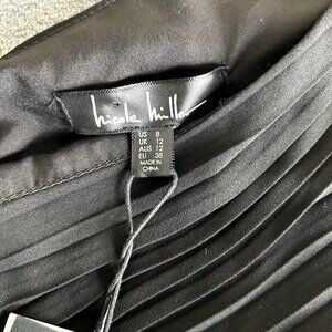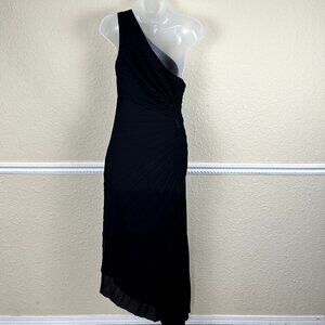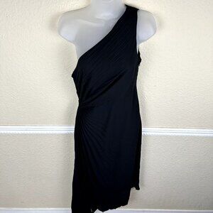 Nicole Miller One Shoulder Pleated Solid Black Dress Asymmetrical Whimisical 8