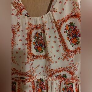 Madewell Fully lined sleeveless dress with a vibrant floral print with adorable open cross-cross back. There is slight discoloration at the front collar area, that could possibly from make up (please see picture for reference). In good pre used condition.