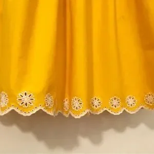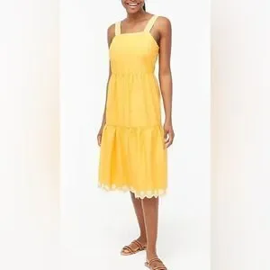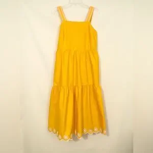 J. Crew Yellow dress size 4 with white eyelet embroidery details. Scalloped bottom hem. Small grey mark on the front barely noticeable but pointed out in the pictures. Smoke free home.