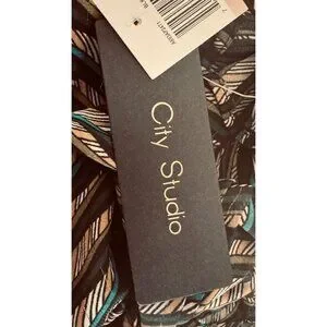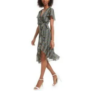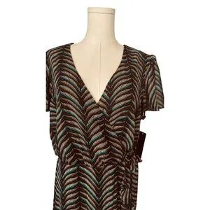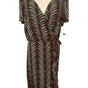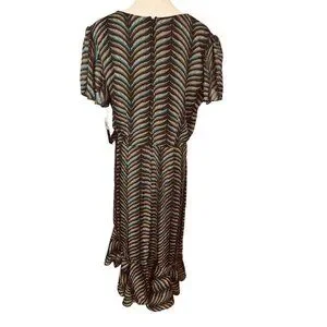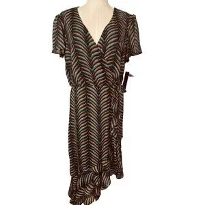 NWT City Studio Size 15 Multicolor Chevron Wrap Dress Ruffle Hem V-Neck