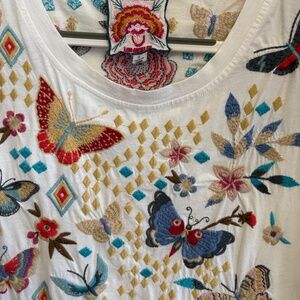Johnny Was embroidered top with butterflies size large. In excellent condition, no perfume no non-smoking home.
