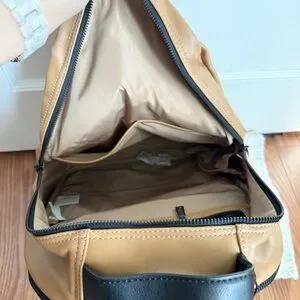 Bought brand new and never used. In perfect condition. It looks very beautiful and the faux leather is very soft and smooth. Would love to use it but doesn’t meet my needs right now.