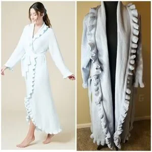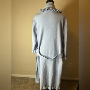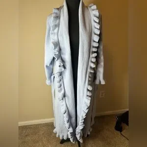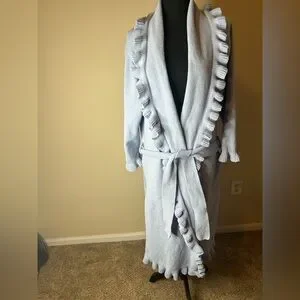 Robe is sky blue long sleeves with ruffles very soft like new be free to bundle