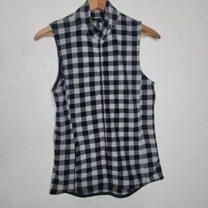 Cuddl Duds Womens Cozy Comfort Black Plaid Fleece Full Zip Thermal Layer Vest✨️M