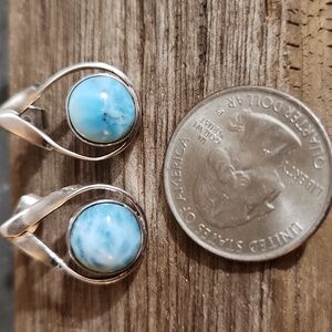 Larimar And Sterling Silver Earrings. EUC