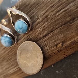 The beautiful color of Larimar that is said to only be found in The Dominican Republic. This sweet blue stone is set in genuine solid sterling silver. Excellent pre-owned condition these will come in a drawstring pouch. 3