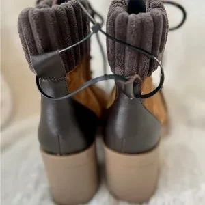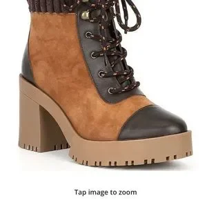 Chelsea & Violet Zaria Brown Leather Suede Lug Sole Platform Booties Sz 9M NEW