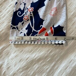 SJS Women's Floral Navy and Orange with Embroidery Trim Top Size S