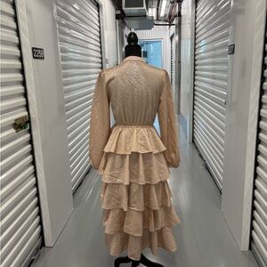 Mazik Tan Blush Pink Gold Ruffled Tiered Gown with Mandarin Collar