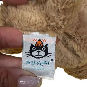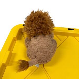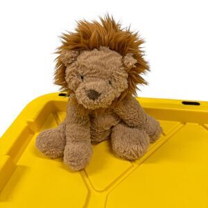 Jellycar plush lion stuffed animal in excellent condition. Features a fluffy brown mane and tail, with soft beige fur body. Perfect for nursery decor, playtime companions, or as a comforting bedtime friend. The plush toy is well-made with quality stitching and safe materials, making it an ideal gift for any young animal lover.