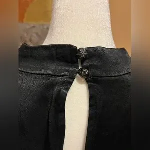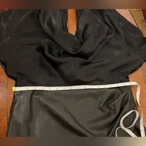 Maeve Anthropologie Black Satin and Vegan Leather Mini Dress. Cowl neck. Size 16